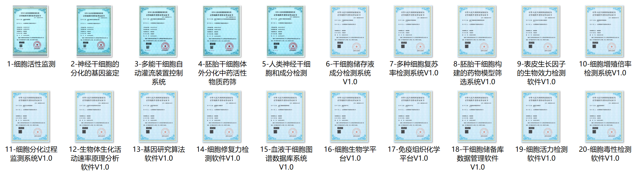 作者:XXX 发布日期:2023年12月31日 分类:新闻分类 阅读:10 高新技术企业证书中关村高新技术企业证书细胞生物实验室GMP认证 干细胞制品通过第三方权威检测机构的合格检验报告国家发明专利证书软件著作权登记证书干细胞试剂盒产品CFDA认证健全的质量控制体系