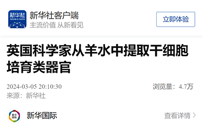 伦敦大学学院和大奥蒙德街医院研究人员在12次例行妊娠检查中提取流入羊水的胎儿干细胞,通过单细胞核糖核酸测序确定这些干细胞来自哪个器官,之后用这些干细胞培育出肺、肾、肠的类器官。这一过程不会触碰到胎儿。